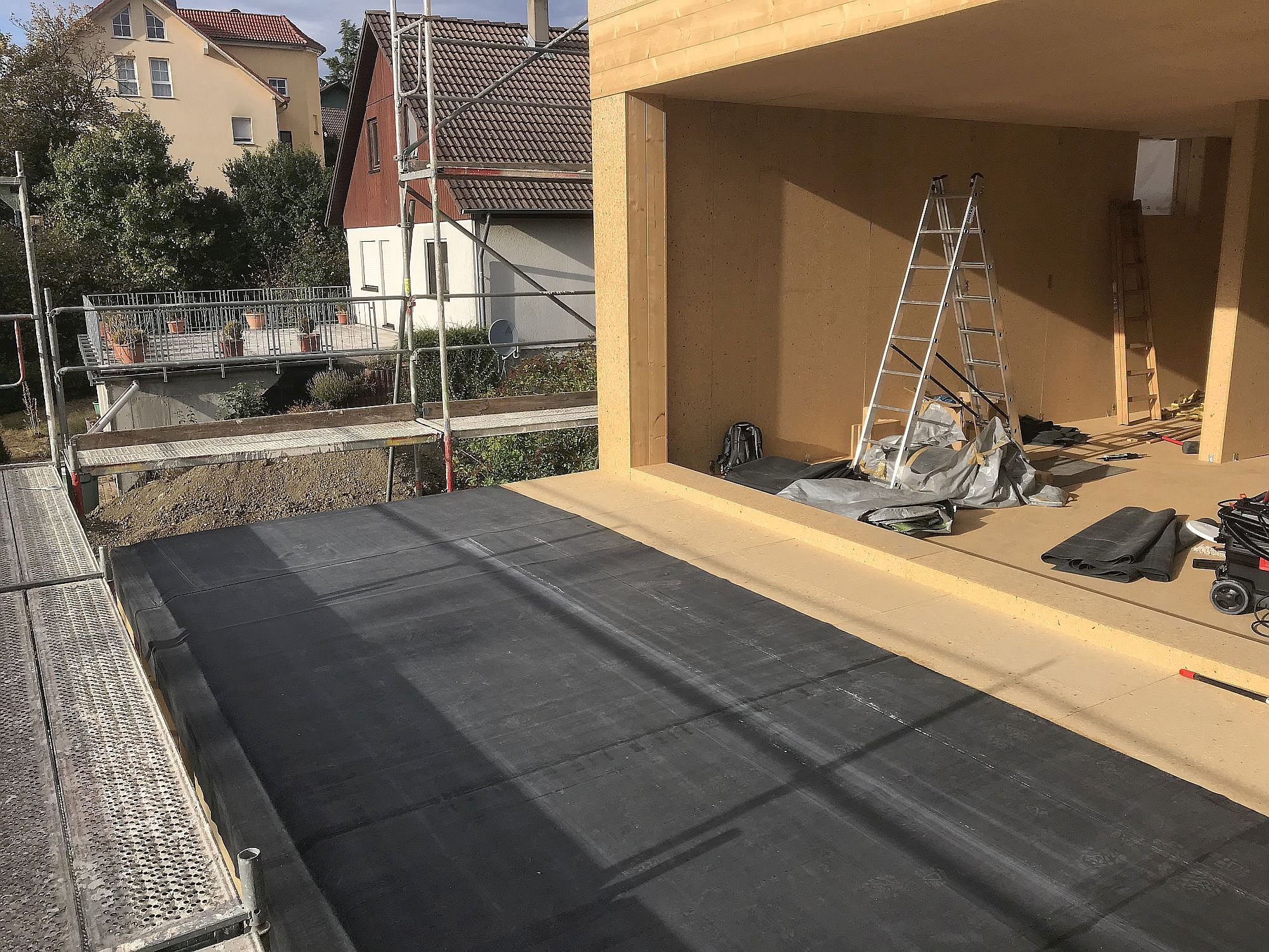 ElastoTop® EPDM mit Zulassung abP - 1,5 m breite Dachbahn mit 20 Jahren Materialgarantie - wird i.d.R. direkt auf den Untergrund geklebt (bleibt OFFEN liegen).