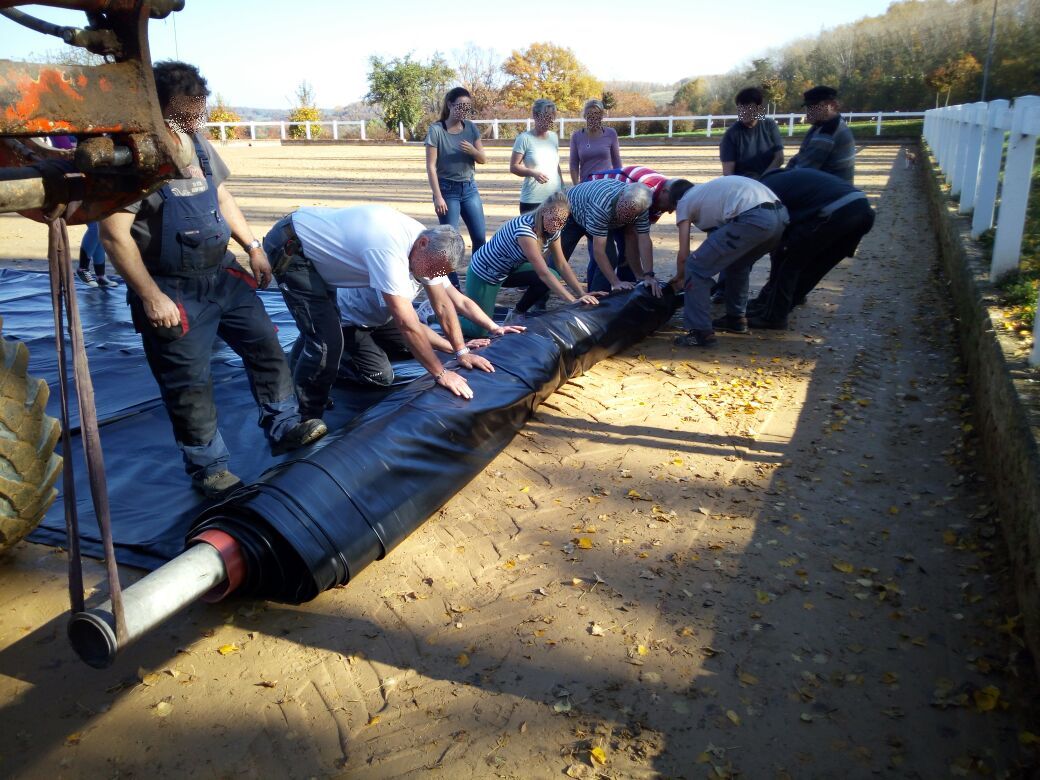 Die Abdichtungsfolie wird auf Ihr gewünschtes Maß konfektioniert, gefaltet und aufgerollt [je nach Größe der Folie auf Hohlkern (ca. 2m)]. Lieferung auf einer Palette per Spedition. Der Spediteur ruft Sie an und spricht mit Ihnen einen Termin ab, der Fahrer stellt die Palette auf dem Hof ab (Lieferung frei Bordsteinkante).
