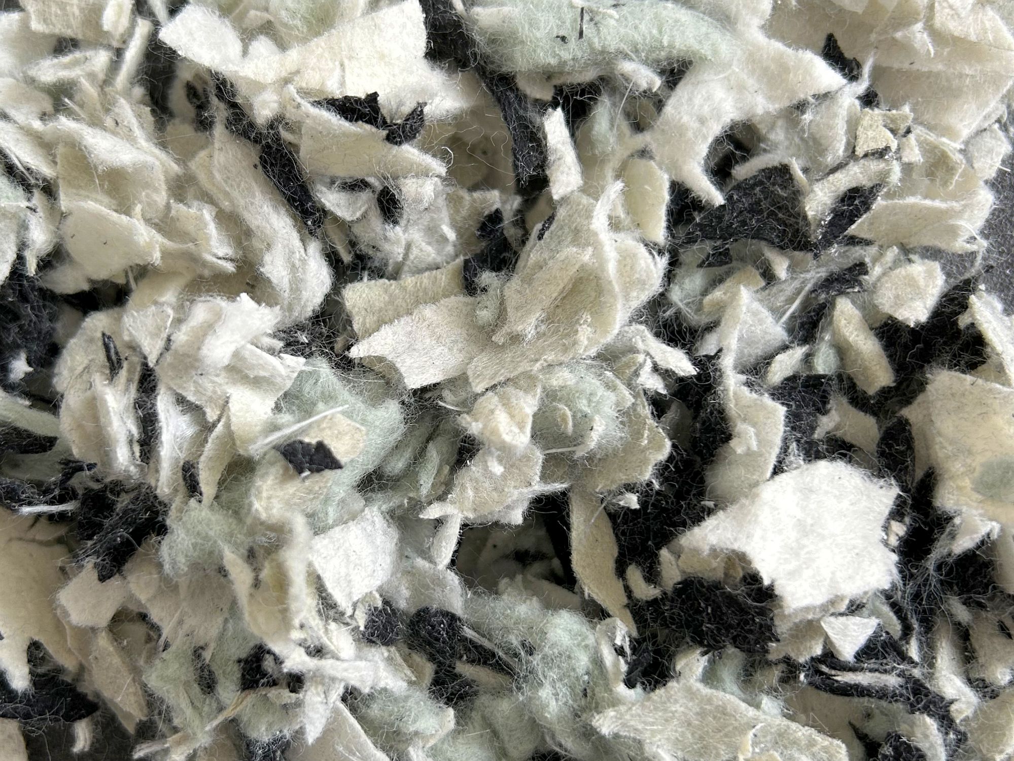 Vlies gehäckselt bis ca. 3 cm Größe - Allround (Mix aus verfestigten Häckseln und Nadelvlies). Überprüft nach DIN 18035-7, Analyseumfang: RAL-GZ 944; Anhang D.